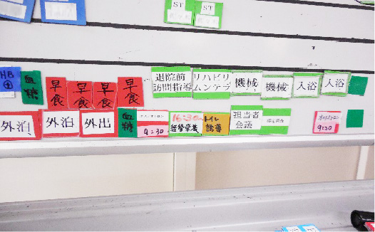 モニターに当日のリハビリスケジュールを